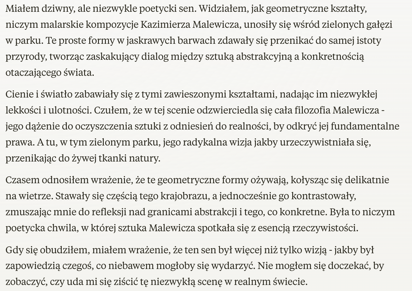 „Świat jako przedmiotowość jest fikcją, najważniejsze jest odczucie – a więc sztuka doszła do siebie samej przez suprematyzm.”